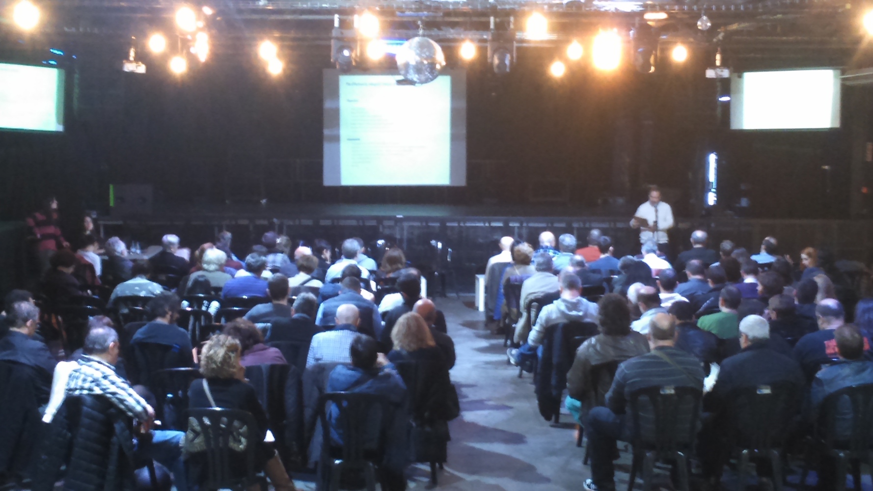 Francesc Carmona, conseller del districte, dona la benvinguda a l’acte.L’equip dinamitzador presenta el procés participatiu, la plataforma digital i la metodologia del debat. Després de la presentació temàtica s’informa que es faran 4 grup de debat en funció zones d’oci nocturn identificades en el districte i el nombre assistents:Grup Sud Zona Lúdica / Poblenou 1 ;Grup 2 Zona Sud Zona Lúdica/ Poblenou, zona Nord Triangle Lúdic; Fòrum/Port Olímpic.Francesc Carmona, Districte Sant Martí fa exposició per situar el debat en torn l’oci nocturn responsables i que s’està fent des del districte.Informa renovació comissions de barri i de les vice-presidències. Això es farà en el procés Consell de Barri.No es parteix de zero, hi ha algunes actuacions i propostes genèriques que s’estan fent en els darrers anys. Explica els tres punts d’alta conflictivitat que han identificat en el districte: Zona Nord de Parc i la Llacuna, Port Olímpic i Fòrum. Hi ha també altres llocs on l’oci nocturn acaba generant problemes. Aquests llocs són els punts claus. Ells han iniciat un PAM/PAD inicial, amb unes propostes que no són gaire especifiques. En el Pam es parla d’un Pla d’Acció sobre Drogues. En convivència i seguretat seran 2 eixos a treballar, identificar els conflictes emergents, elaborarem una norma ordenança de convivència i un pla de prevenció i seguretat. Un altre aspecte que s’està treballant és el tema de les ordenances de terrasses.Pel que fa al PAD, hi ha 2 aspectes que fan referència a la convivència i a la seguretat, promovent civisme i cooperació amb el veïnat, i proposant els agents cívics i els educadors en les festes de barri. D’altra banda, i ha hauria la policia de seguretat. L’altra seria medi ambient i espai públic.Una zona molt conflictiva és la del Triangle Lúdic. Les actuacions combinen seguretat i convivència, neteja i manteniment, el veïnatge i els locals i s’ha volgut relacionar els 4 elements. Des del 2014 hi ha un Pla d’actuació Integral. A Port Olímpic el problema continua, problemes d’excés d’aforament i manca de seguretat tot i les càmeres de vigilància i la seguretat. La concessió del Port finalitza al 2020 però no es pot esperar fins llavors. La zona final es la zona Fòrum és una àrea de concerts i també genera problemes com consum begudes, miccions. Hi ha sis educadors socials i mediambientals, però és difícil de resoldre quan hi ha concerts massius.En sessió plenària de nou es presenten els resultats dels 4 grups de treball.Després es passa a diversos temes del Consell de Barri. Es tanca l’acta de la sessió de debat.
