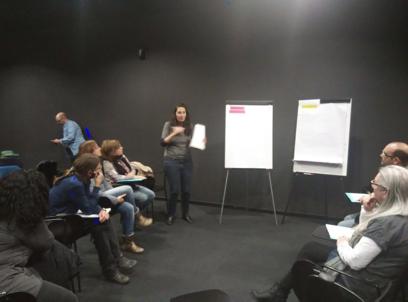 En general, els i les assistents pertanyen a entitats i sectors de l’administració focalitzats en l’àmbit de l’ocupació, el comerç i a l'emprenedoria, així com a associacions veïnals i cooperatives.A la part de l’exposició dels tècnics, cal esmenar diferents idees principals presentades pels i les ponents.En primer lloc, el senyor Paco Ramos, director executiu d’ocupació de BCNactiva, va assenyalar la importància d’establir al districte un eix aglutinador d’ocupació, un lloc presencial on les persones aturades puguin donar resposta de manera integral a pregunta: Sóc aturat, que podeu fer per mi?Darrerament, el senyor Xavier Rubio, tècnic d’Altres economies a BCNactiva, va reflexionar envers la necessitat d’avançar cap a una ciutat cooperativa, on l'economia social i solidari ja és una realitat que s’ha obert pas al municipi.Per últim, la senyora Mercè García, directora de Comerç de l’Ajuntament de Barcelona, va puntualitzar la dificultat existent de conèixer la situació real i actual del comerç a la ciutat, i la manca d’un estudi corresponen per dissenyar polítiques més acurades al sector per manca de dades. D’altra banda va argumentar la necessitat de reconèixer la funció de desenvolupament social i comunitari del comerç als barris, i que el reconeixement i prestigi del sector passa necessàriament per la formació i innovació del sector.El debat es va dividir en dos àmbits de discussió: Ocupació i Emprenedoria per una banda, i Comerç, Empresa i Noves Economies per l’altre.En relació a l’ocupació els i les participants en el debat manifesten una falta de diagnosi acurada al districte. 25.000 persones estan a l’atur sense prestació i l'ocupació a la indústria s’ha reduït dràsticament i hi ha hagut un abaratiment de la mà d’obra. Al grup de discussió es planteja la necessitat d’una reindustrialització, dintre dels límits (que també són límits globals), al districte, amb una promoció del sector. Es reflexiona grupalment envers l’augment de l’ocupació no qualificada, especialment en el sector serveis (comerç, turisme i atenció telefònica), contraposat a l'ocupació qualificada que es concentra al 22@ i l’augment del Tercer Sector.En relació a l’Emprenedoria, els i les participants al debat creuen que existeix una manca de coneixements i de connexió entre el sector i l’àmbit universitari. També caldria augmentar el suport econòmic i financer per tal de promocionar l'economia social i solidaria. Històricament desprestigiada, fomentat així els sectors minoritaris.Existeix l'opinió generalitzada de la necessitat de crear una escola d’emprenedoria que a través de la formació i la innovació promocioni el sector i supleixi la mancança de col·laboració entre l’administració publica, les entitats i la universitat per tal d’establir una connexió estable dins la societat del coneixement.En relació al debat d’empresa, comerç i noves economies, els i les participants al debat creuen que manca ocupació en relació al volum de població, encara que existeix un gran volum de comerç de proximitat, i també de resistència. Existeix a més, en opinió del grup, una desertització de l’Eix Pere IV per manca d’habitatge que condiciona la manca de comerç a la zona, i que el plantejament urbanística del 22@ condiciona la ubicació de les activitats, ja que aquestes activitats estan limitades i determinades.En relació a les grans superfícies com Glòries o Diagonal Mar, els i les participants al debat, creuen que aquestes superfícies representen una amenaça per al comerç de proximitat. A més s’expressa que a normativa d’horaris no es compleix de manera acurada al districte i això crea malestar entre els i les comerciants.