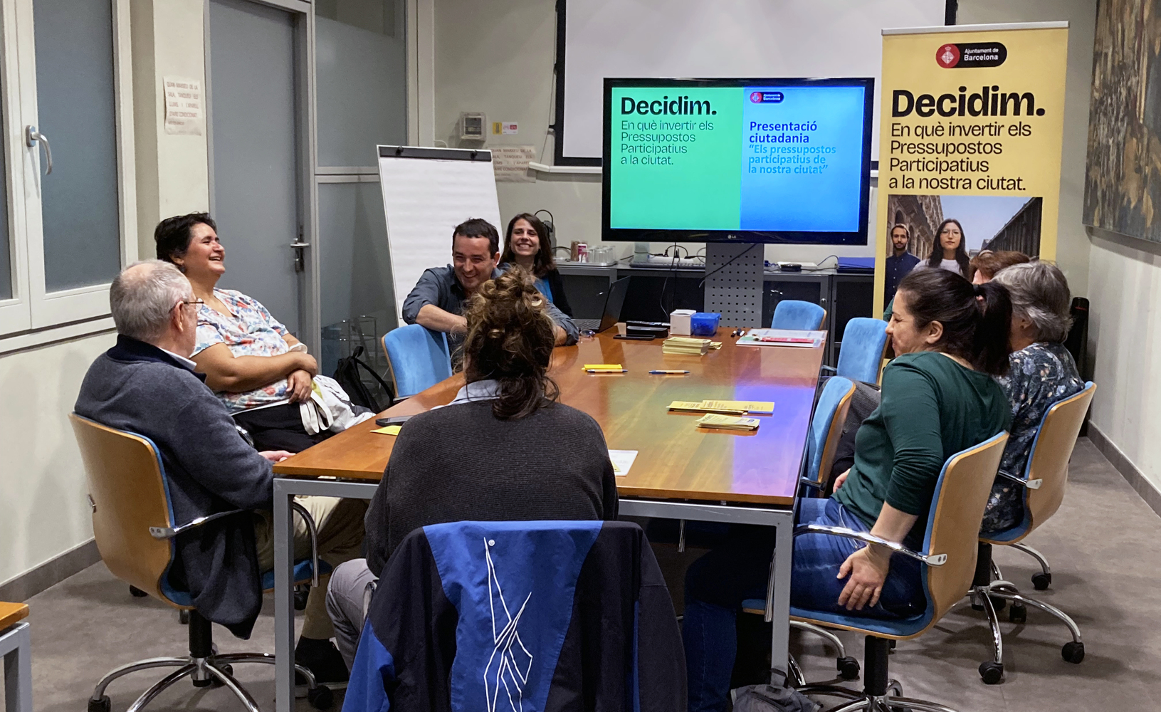 La primera part de la sessió va estar destinada a explicar els objectius, les fases i els canals de participació del procés dels pressupostos participatius de l’Ajuntament de Barcelona. Es van explicar els criteris per tal de presentar-hi propostes, fent molt incís tant en allò sobre el que sí es poden fer propostes (projectes d’inversió) i aquells temes que queden fora de l’àmbit dels pressupostos participatius.